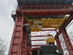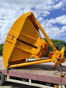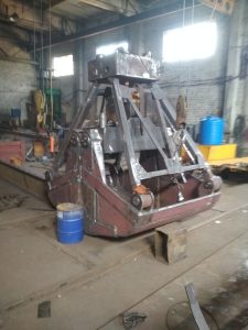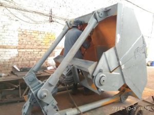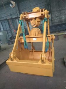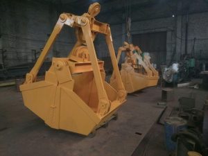 - Челюсти подгребающих грейферов во время работы движутся по прямой, близкой к горизонтальной плоскости, в результате чего груз, рассыпанный тонким слоем, подгребается и зачерпывается.